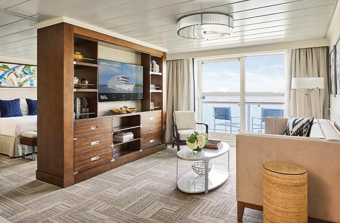 ACL American Song cabins and suites review at CruiseMapper provides detailed information on cruise accommodations, including floor plans, photos, room types and categories, cabin sizes, furniture details and included by American Cruise Lines en-suite amenities and services.