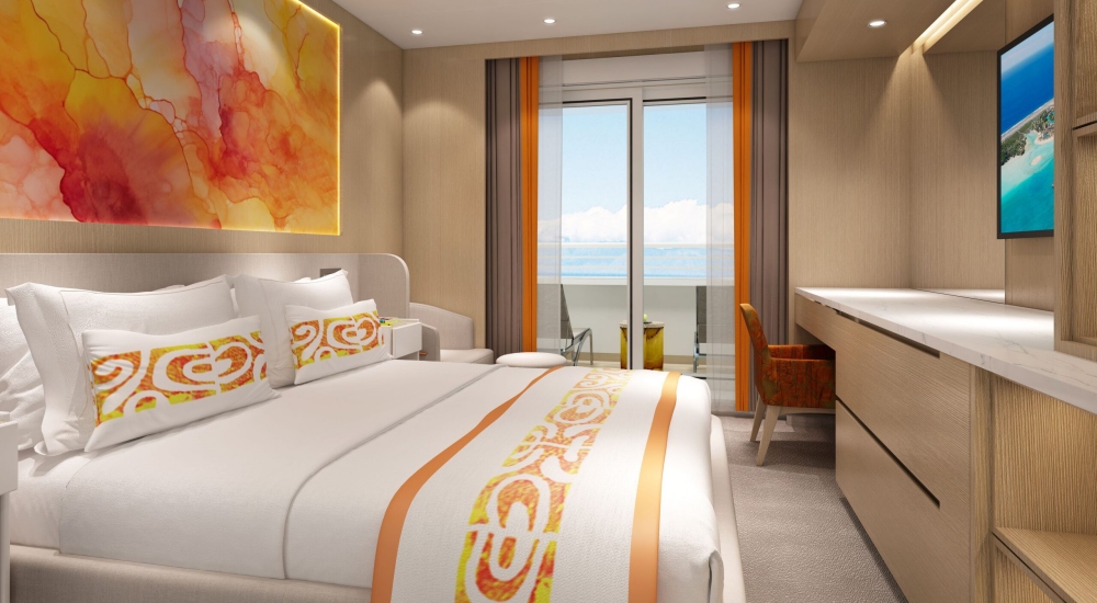 ~70% of all passenger cabins (including all suites) feature private open-air balconies accessed via floor-to-ceiling sliding doors.