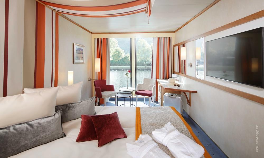 Arosa Riva cabins and suites review at CruiseMapper provides detailed information on cruise accommodations, including floor plans, photos, room types and categories, cabin sizes, furniture details and included by Arosa Cruises en-suite amenities and services.