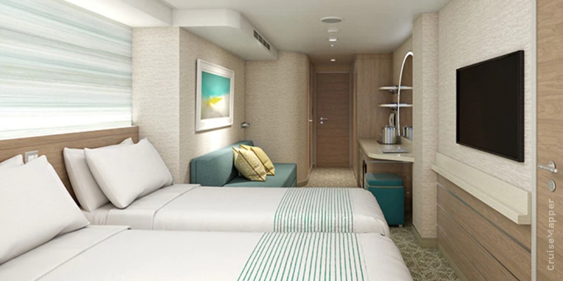 Oceanview cabins come with a picture window and twin beds (non-convertible to King when upper beds are in use). Some include a sofabed and/or Pullman bed for third or fourth guests. Spa Oceanview rooms have obstructed views, with some featuring Pullman beds for a fourth guest.