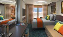 The new Family Harbor cabin categories include FS-Suites, FO-Family Harbor Aft Balcony, FM-Cove Balcony, FJ-Deluxe Oceanview, FE-Oceanview, and FA-Interior. Designed for families, these staterooms have larger living areas and higher capacity, with double sofabeds and additional bunk beds. All Family Harbor cabins are located near the Family Harbor Lounge on Deck 4 (forward-midship), an exclusive complex offering 24-hour dining, concierge service, board and video games, and a large movie screen.