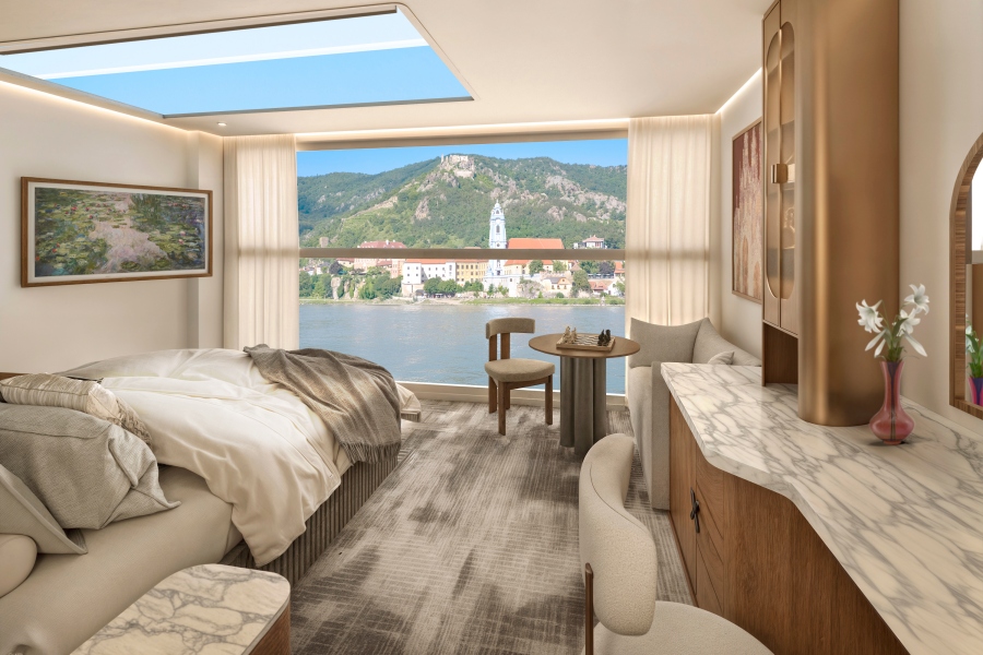 Celebrity Boundless cabins and suites review at CruiseMapper provides detailed information on cruise accommodations, including floor plans, photos, room types and categories, cabin sizes, furniture details and included by Celebrity River Cruises en-suite amenities and services.