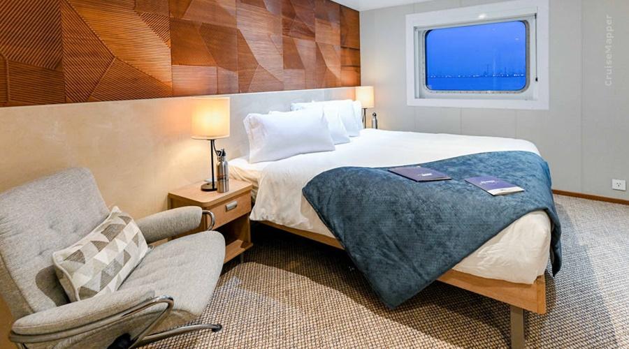 Coral Adventurer cabins and suites review at CruiseMapper provides detailed information on cruise accommodations, including floor plans, photos, room types and categories, cabin sizes, furniture details and included by Coral Expeditions Australia (Small Cruise Lines) en-suite amenities and services.