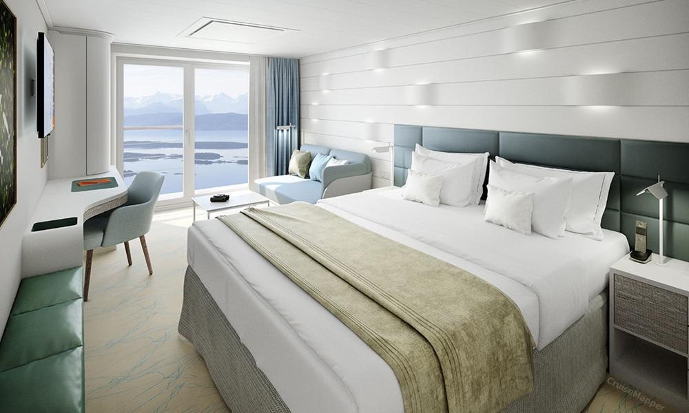 Of the 120 cabins on Hanseatic Spirit, 63 are Standard Balcony staterooms. The ship also features 18 suites (Grand and Junior categories), all equipped with private verandas.