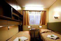 Each cabin has 1 window (opening) and 3 beds (2 fixed plus 1 foldaway / bunk bed). Bed size is 1,9 x 0,8 m. Lower beds can't be converted to double (put together) because are attached to the walls. Triple cabins can be also booked as Twins (with double occupancy rates).