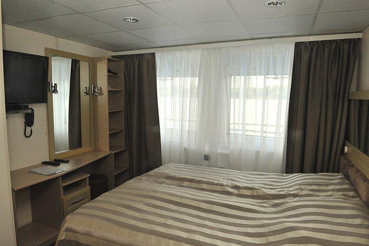 MS Tchaikovsky has a total of 108 cabins (for 207 passengers), including 32 suites, 66 twins, and 11 singles. Fourteen Triple-Quad cabins are located on the Lower Deck but are currently not available for booking. All staterooms are outside (no interior cabins) and feature large opening windows, except for Lower Deck cabins, which have round, non-opening portholes. Cabin ceiling height is 2.2 m.