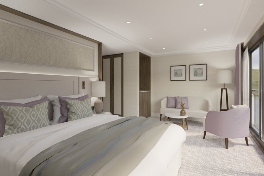 MS Riviera Reflection cabins and suites review at CruiseMapper provides detailed information on cruise accommodations, including floor plans, photos, room types and categories, cabin sizes, furniture details and included by Riviera Travel UK (Scylla Cruises) en-suite amenities and services.