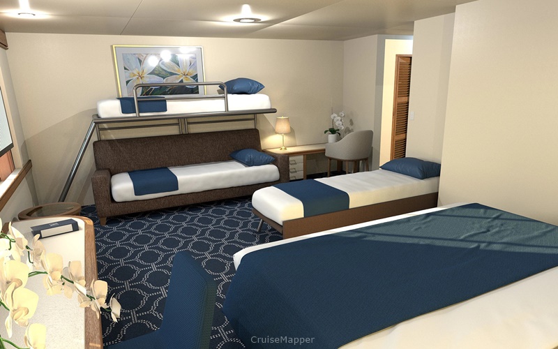 TRIPLE Interior cabins are with two lower twin beds plus one upper bunk (single).