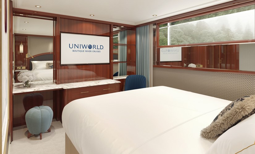 SS Emilie cabins and suites review at CruiseMapper provides detailed information on cruise accommodations, including floor plans, photos, room types and categories, cabin sizes, furniture details and included by Uniworld en-suite amenities and services.