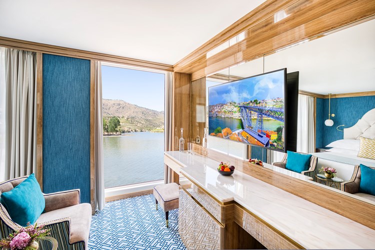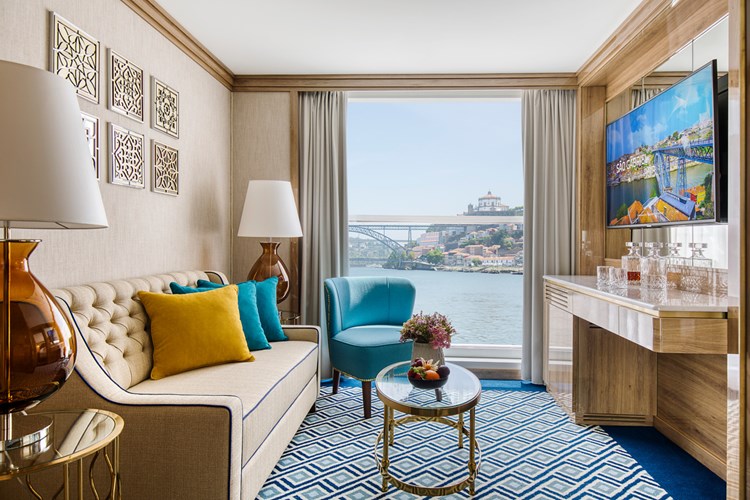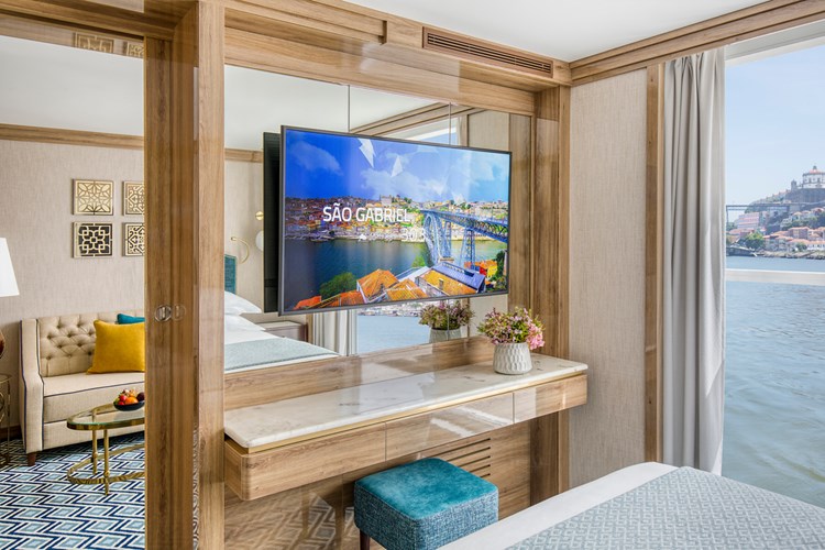 All Upper Deck (Azores Deck) staterooms are Suites, including the four midship-located Grand Suites (boat's largest accommodations). All Suites have French balconies and large living areas. For the first time on the Douro River, Uniworld's SS Sao Rafael Suite booking customers enjoy a dedicated butler service offered on other Uniworld river cruise ships deployed in Europe.