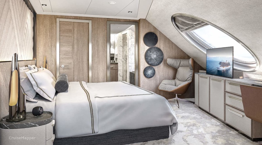 Seven Seas Grandeur cabins and suites review at CruiseMapper provides detailed information on cruise accommodations, including floor plans, photos, room types and categories, cabin sizes, furniture details and included by Regent Seven Seas Cruises en-suite amenities and services.