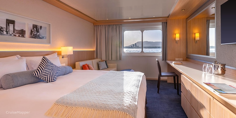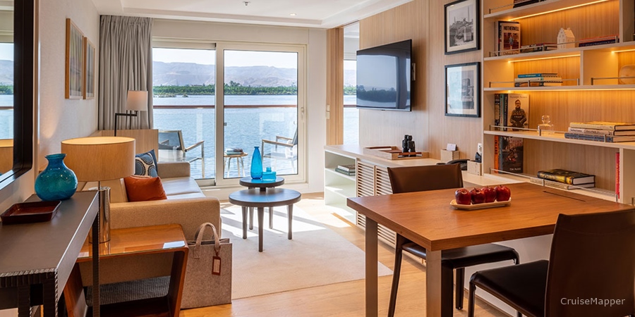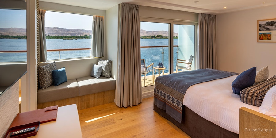 Viking Anubis cabins and suites review at CruiseMapper provides detailed information on cruise accommodations, including floor plans, photos, room types and categories, cabin sizes, furniture details and included by Viking Cruises Egypt (Viking River Cruises) en-suite amenities and services.