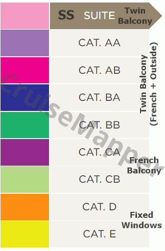 Cruise cabins from 101 to 112, all of which are Riverview Staterooms (at water level, with two non-opening windows - 4x category E, and 8x category D).