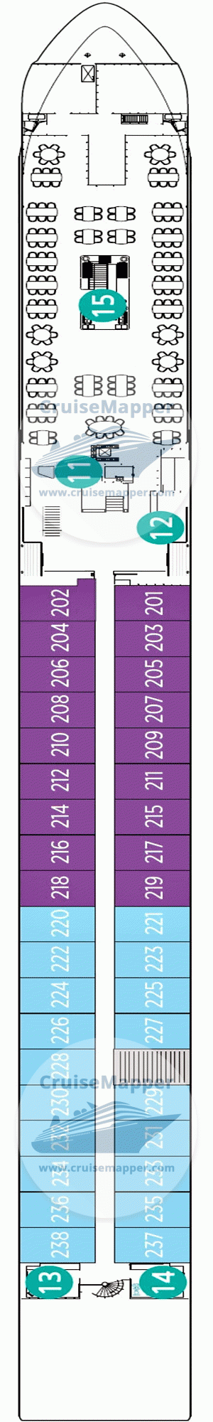 Emerald Star deck 2 plan (Vista-Cabins-Lobby-Restaurant)