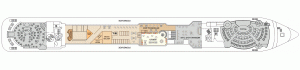 During the ship’s 2008 drydock refit, a huge 101 ft / 31 m long midsection was inserted. This allowed the addition of 70 new passenger cabins, new public rooms (Observatory, Braemar Room, Grampian Restaurant) and the expansion of the Sun Deck area (1 new swimming pool).