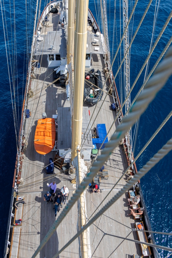 The sailing yacht is also available for private charters, MICE events (Meetings, Incentives, Conferences, and Exhibitions at sea), corporate and teambuilding programs, and scientific and marine conservation expeditions.